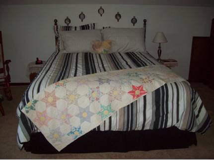 In the commons area of the house there is a small library, a place to sit and visit in front of the fireplace, a dining area and a public restroom. Guests may also sit and relax on the front porch in high back rockers, which has a lakefront view.