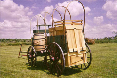 The Chuckwagon the "Mothership of Trail Drives" was a sturdy built vehicle that carried supplies and bed rolls for up to ten men on a cattle drive. Cattle baron Charles Goodnight of Texas has the credit for the design of the chuck wagon. In 1860 he rebuilt his chuck wagon from an Army Surplus wagon because of its durable iron axles. Werner Wagon Works still offers this option with the authentic look of wood hubs and roller bearing inserts.