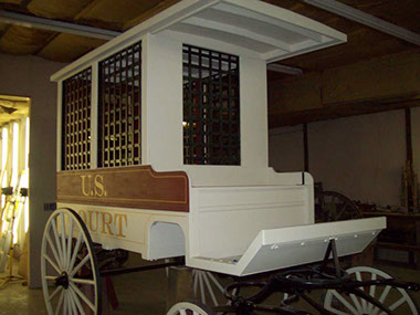 The jail wagon was used to transport prisoners from the courthouse for trial. For those that were particularly dangerous, the Marshals would provide them with an escort on judgment day at Fort Smith, Arkansas.