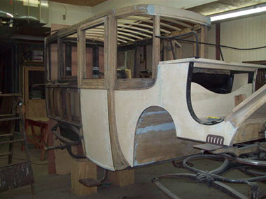Before picture of a turn of the century Pallbearers Coach. The pallbearers would ride in the coach behind the Hearse. This belongs to a gentleman in Nebraska who has a passion for original rare horse-drawn vehicles