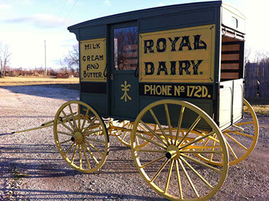Restored Dairy Wagon made by Studebaker. This wagon belong to the Grandfather of the gentleman who now owes it in Oklahoma. This Studebaker was used at the turn of the century to deliver dairy products.